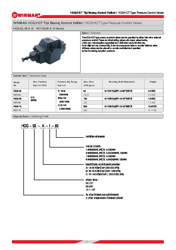 Winman Hcg Hct Serisi Basınç Kontrol Vafleri